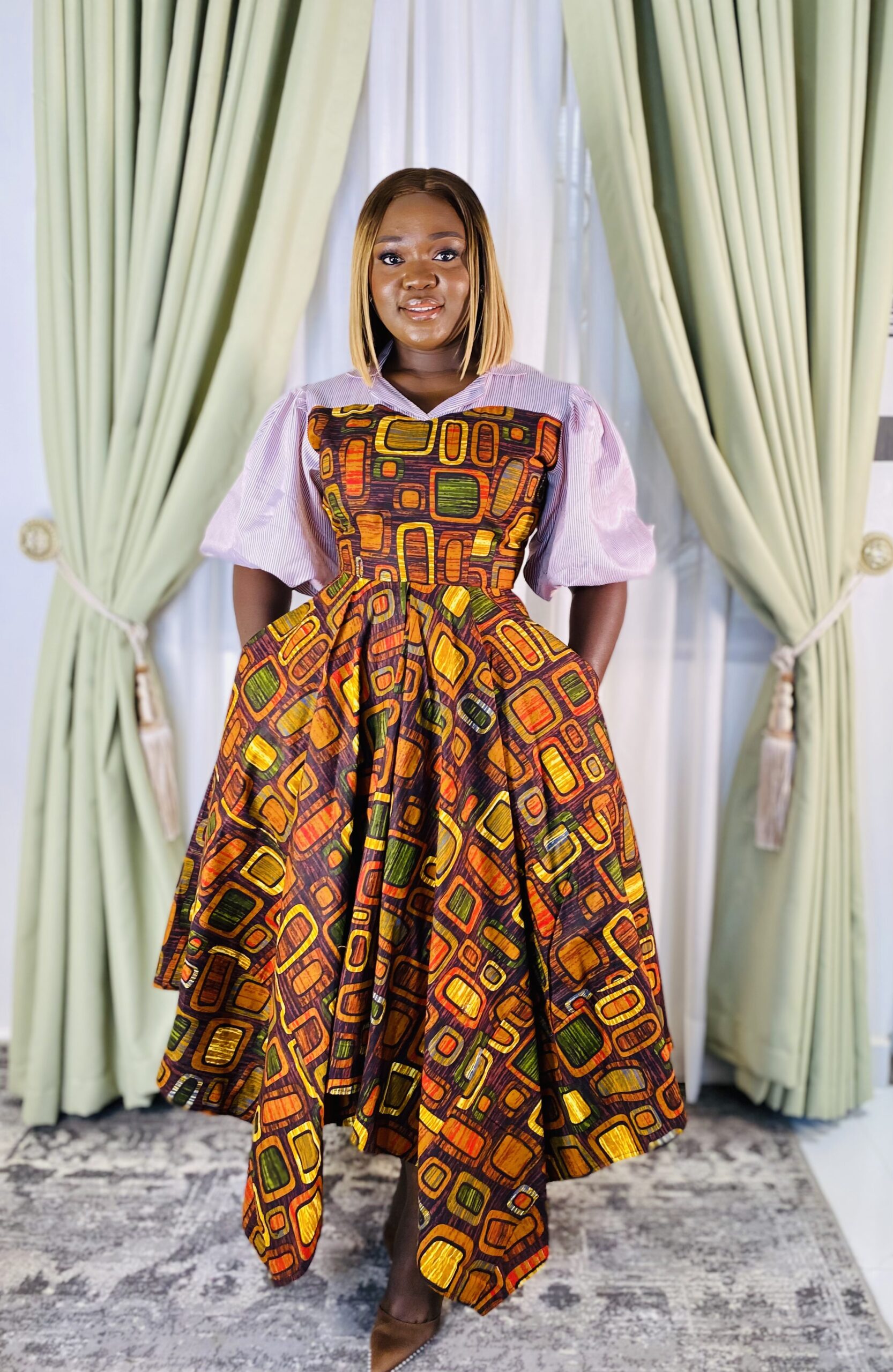 Made with 💯 cotton Ankara fabric. Care instructions – Machine washing/ hand wash.